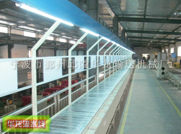 板链输送机又叫链板传送机,链板线,是一种利用循环往复的链条作为牵引动力,以金属板作为输送承载体的一种输送机械设备,链板式输送机应用于重件的输送,常用于各类摩托车、汽车总装输送线及焊接输送机,各类制动器等,板链输送线适用范围:家电业、机电业、摩托车业、电单车业等大中型产品的检测、装配、输送等